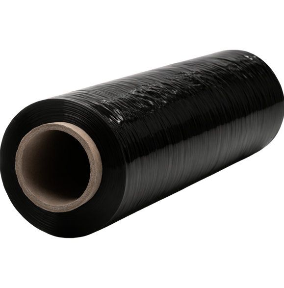 En robust svart sträckfilm som skyddar och döljer innehållet vid transport och lagring.
